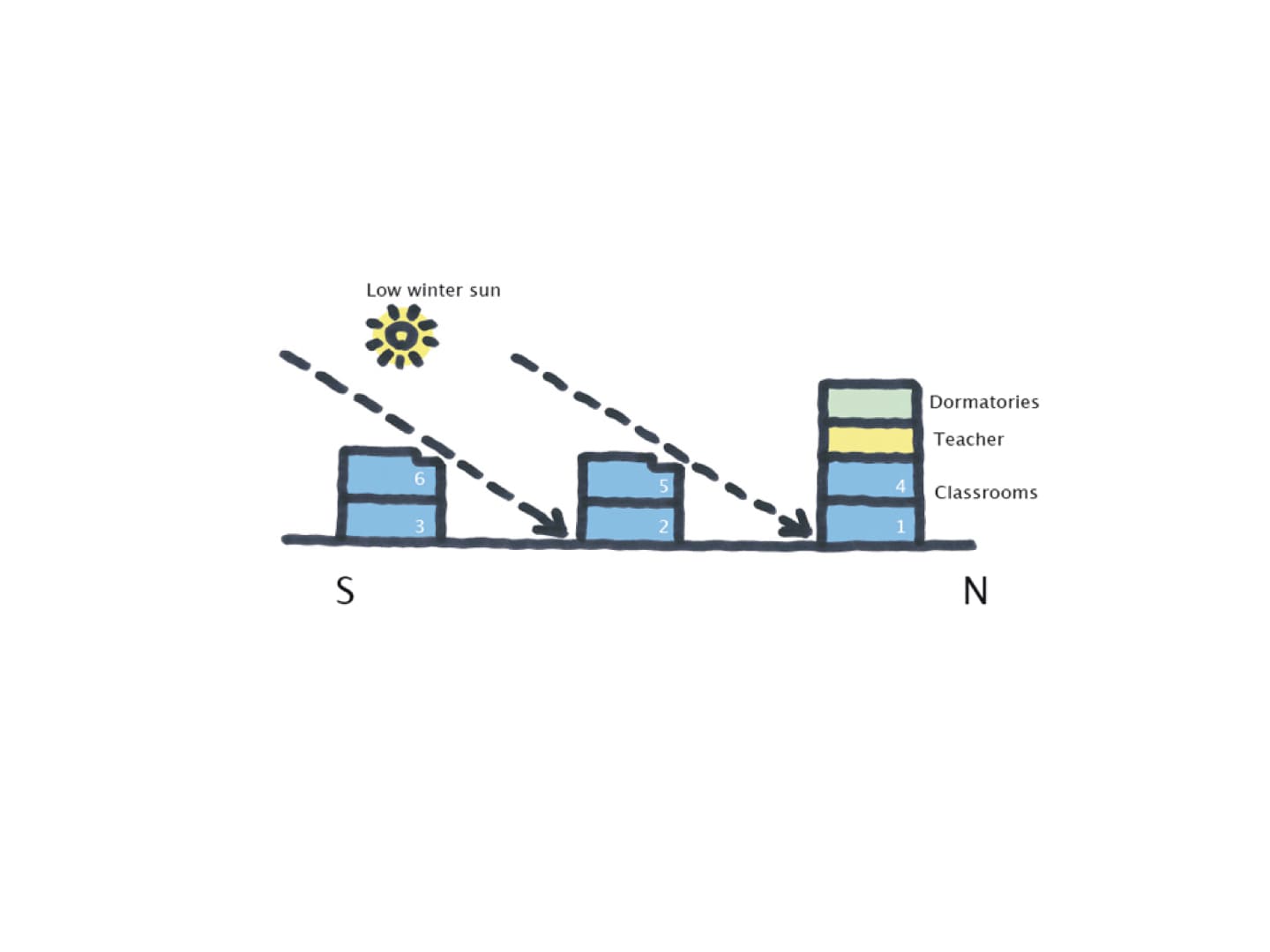 Abschließend betrachtet, bieten die Innenhöfe der Grundschule sichere und gut überschaubare Außenräume. In den Sommermonaten kann hier auch klassenübergreifend unterrichtet werden. Ein kleiner Schulgarten auf dem Dach des Flachbaus ergänzt das Konzept sinnvoll. Das Wohnheim mit Zweibettzimmern für 54 Schüler und Lehrer befindet sich in den oberen Etagen. Es wird über einen separaten Eingang unabhängig vom Schulbetrieb erschlossen. Insgesamt erfüllt die Grundschule höchste Anforderungen an Funktionalität, Nachhaltigkeit und pädagogische Qualität.