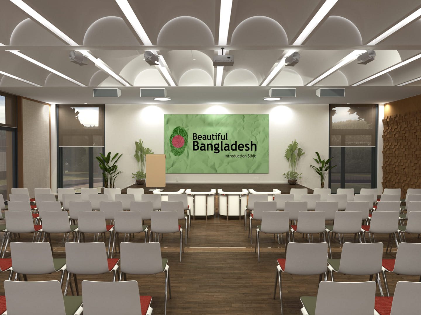 Außerdem ist der Außenbereich thematisch in drei Gärten gegliedert, die auf bedeutende Denkmäler und kulturelle Symbole Bangladeschs verweisen. Insgesamt präsentiert sich das Gebäude als ein Ort, der Tradition und Moderne in Berlin gekonnt vereint.