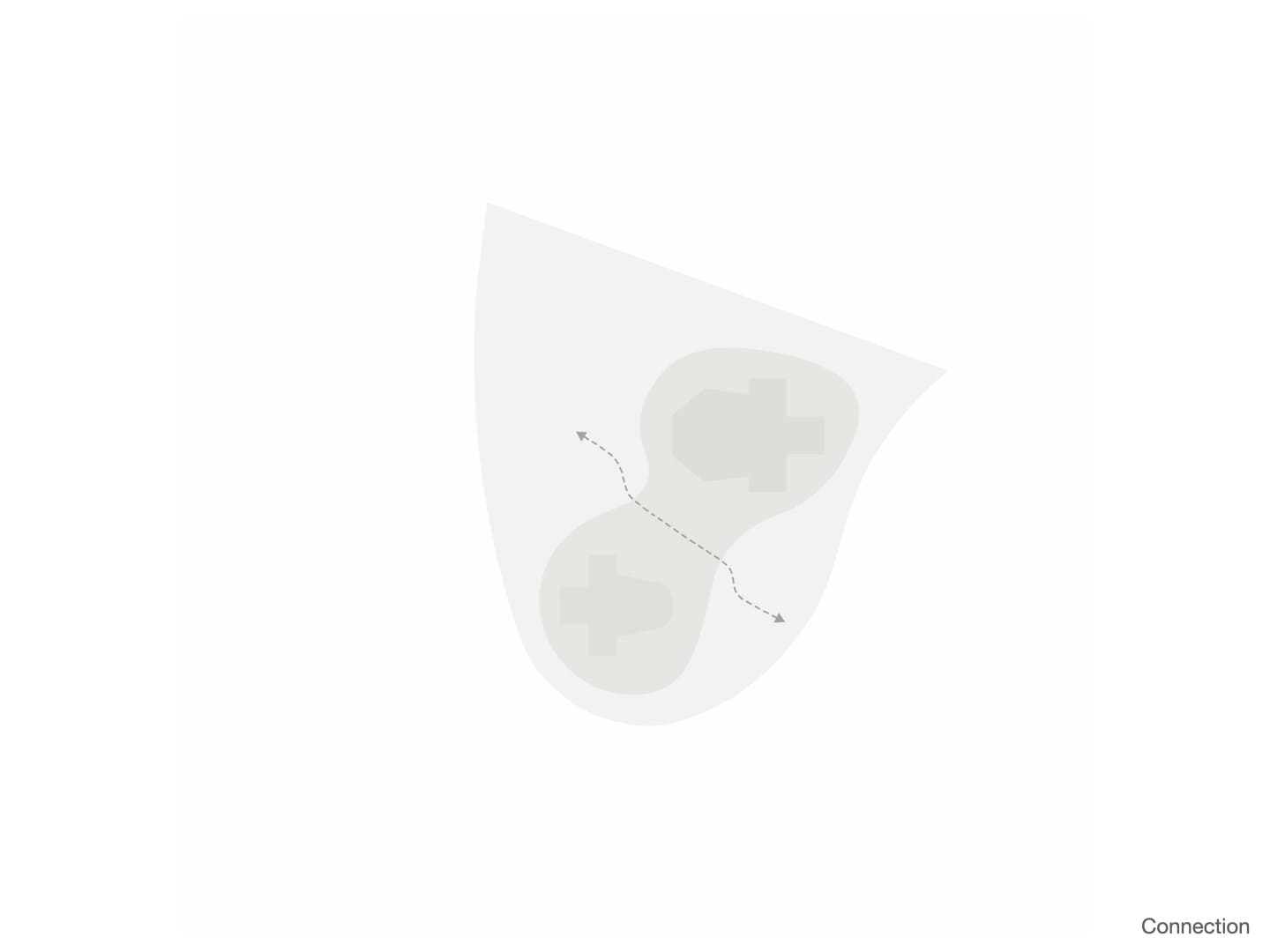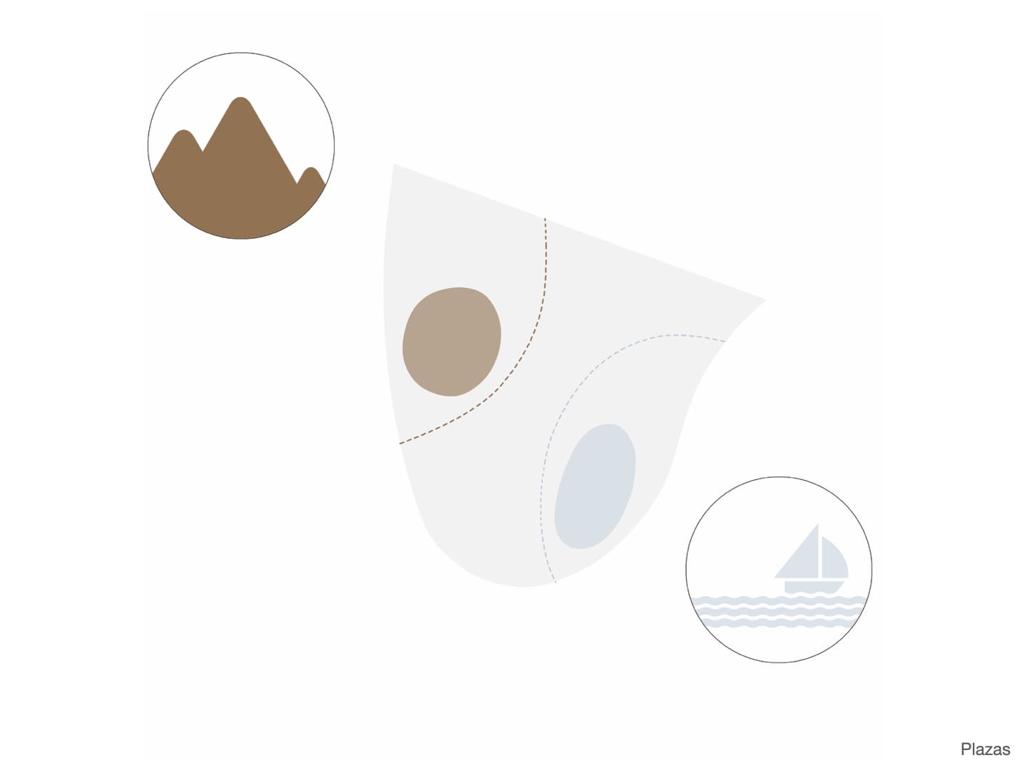 Weiterhin schützt eine dünne, transparente und transluzente Haut das Gebäudeinnere vor Regen und Sonne. Gleichzeitig verbindet sie die Volumen der beiden Hauptfunktionen zu einem Gebäude. In der Mitte öffnet sich das Bauwerk, sodass der öffentliche Raum frei durchfließen kann. So werden Mountain Plaza und Ocean Plaza miteinander verbunden.