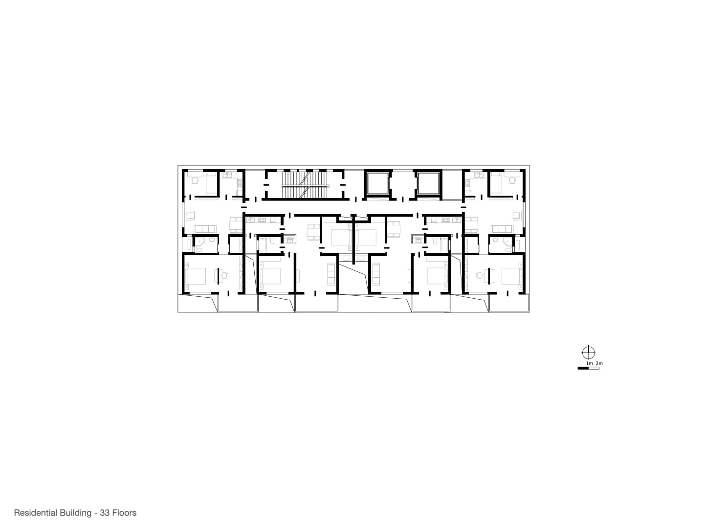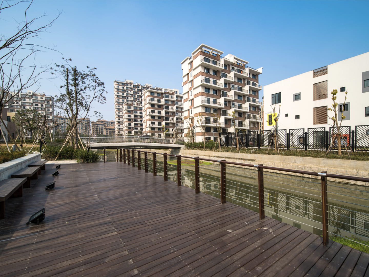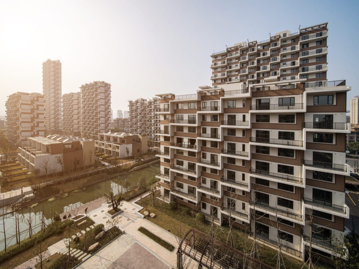 Zudem sind entlang des Wasserkanals flache Wohngebäude, Stadthäuser und ein Kindergarten angeordnet. Im Norden und Westen grenzen Hochhäuser mit straßenbegleitenden Sockelgebäuden für den Einzelhandel an. Dadurch entstehen unterschiedliche urbane Räume, welche die städtische Dichte entlang der Straßen erhöhen, sich jedoch zum Fluss hin öffnen und abnehmen. Insgesamt umfasst die Grüne Residenz Yu Hang rund 1.000 neue Wohneinheiten.
