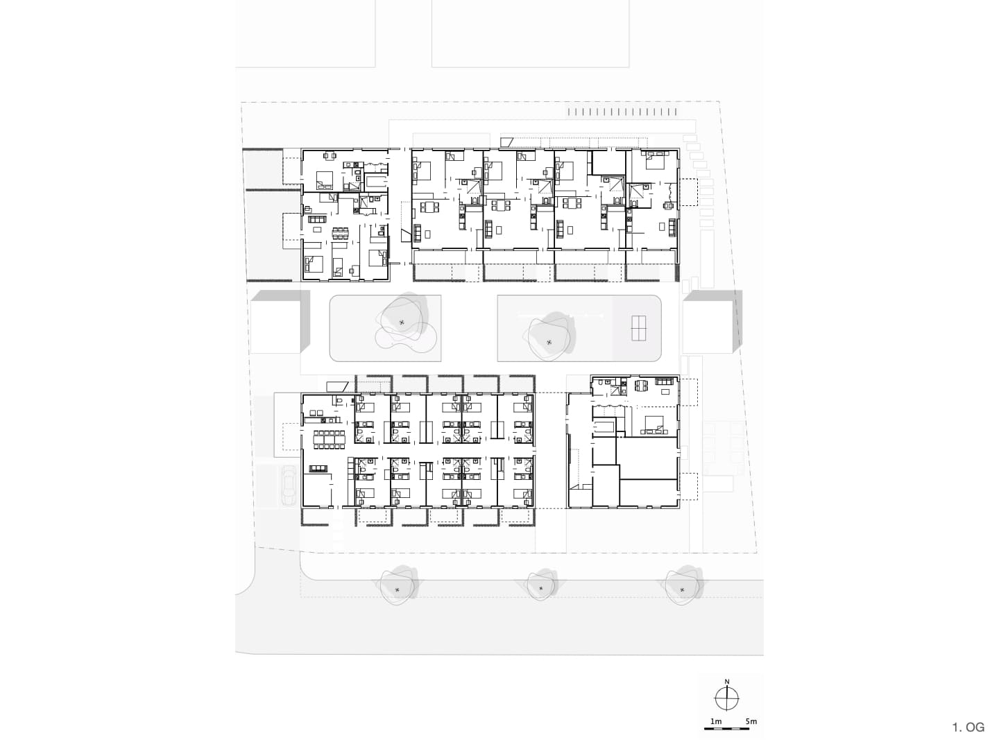 - Diversifizierung der Nutzer_innen: Mischung unterschiedlicher Wohnungsgrößen und -typen, auch rollstuhlgerecht, in 42 Mietwohnungen und betreuter Wohngemeinschaft für Menschen mit Behinderung