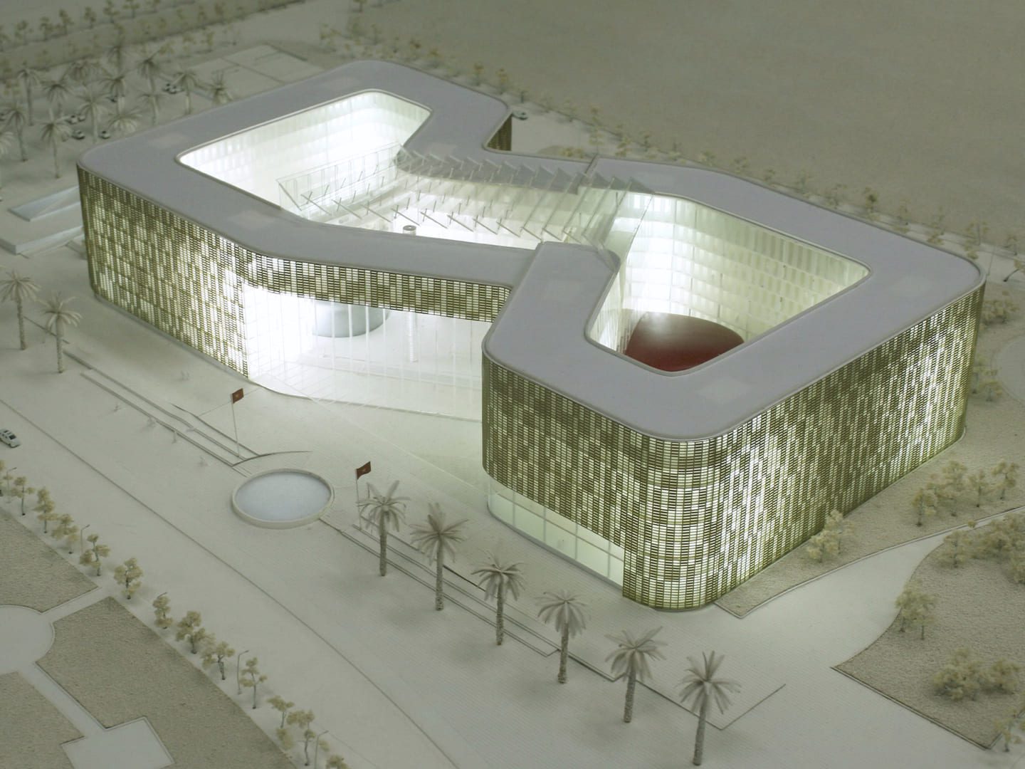 Zusätzlich umschließt die skulpturale Großform moderne Büroflächen für rund 2.500 Mitarbeiter und integriert zwei nahtlos ineinander übergehende Atrien. Diese Atrien bilden das Herzstück des Außenministerium Vietnam und beherbergen geschützte Bereiche für Konferenzen, Empfangszonen, Pausenbereiche und hochwertige Gastronomie. Besonders an heißen Tagen bieten die Atrien angenehme Aufenthaltsqualität bei gleichzeitig repräsentativem Ambiente.