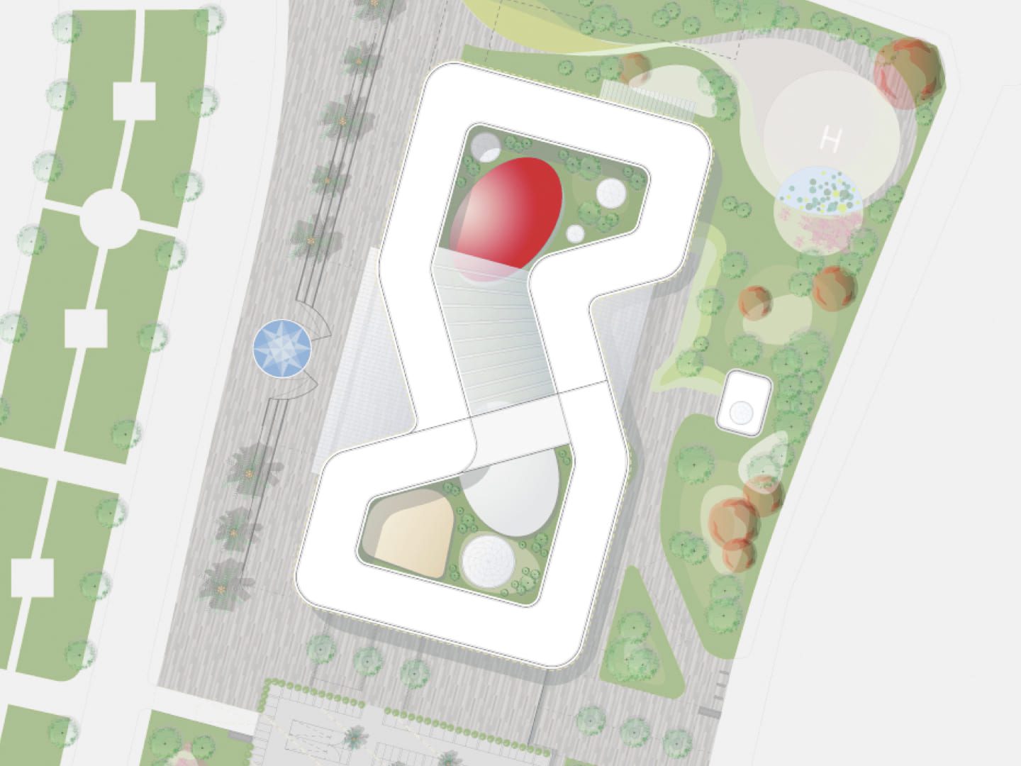 Darüber hinaus fungiert ein multifunktionaler urbaner Platz als zentrales Element für öffentliche Veranstaltungen, feierliche Zeremonien und repräsentative Anlässe. Gleichzeitig bietet dieser Platz eine offizielle Vorfahrt mit direktem Zugang zum gesicherten Bereich des Außenministerium Vietnam. Die Zufahrt für das Personal erfolgt separat, wobei das Gebäude streng in verschiedene Sicherheitszonen unterteilt ist, um funktionale und organisatorische Abläufe optimal zu unterstützen.